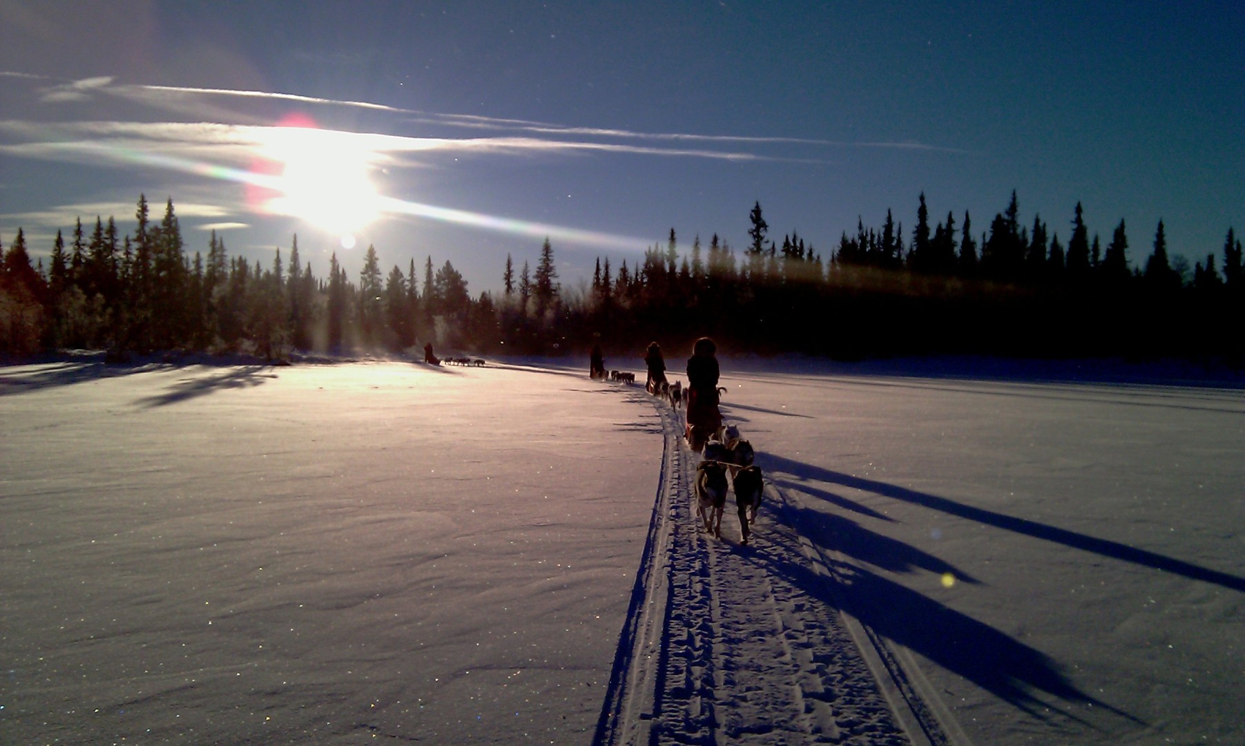 Je hebt tijd om met de honden te knuffelen en je krijgt uitgelegd hoe je zelf je slee bestuurt. Ineens stopt het geblaf, de eerste slee met de gids en zijn team glijdt de wildernis in. En daarna jij ook…