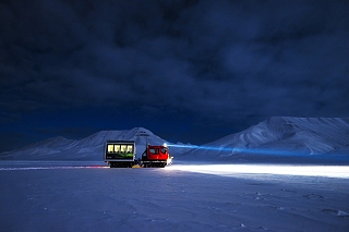 Noorderlichtsafari - een gezinsvriendelijke tour. We rijden over de bevroren Adventdalen-vallei en stoppen meerdere malen om het Noorderlicht te zoeken. Het kan koud zijn, dus zorg voor warme kleding. December tot half maart - 2,5 uur - vanaf 2 jaar.