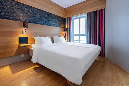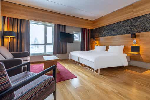 Radisson Blu bevindt zich in Turistsenteret. Standaardkamer met douche/wc, tweepersoonsbed of 2 eenpersoonsbedden en slaapbank, 28 m².