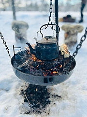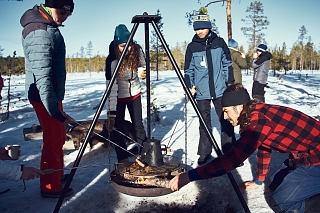 Avontuur van 10.00 tot 16.00 uur inclusief maaltijd bij het kampvuur voor NOK 5.500 per persoon, alleen volwassenen.