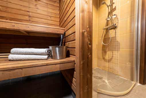 Badkamer 1: met toilet. Badkamer 2: met 2 douches, sauna. Badkamer 3: met toilet.