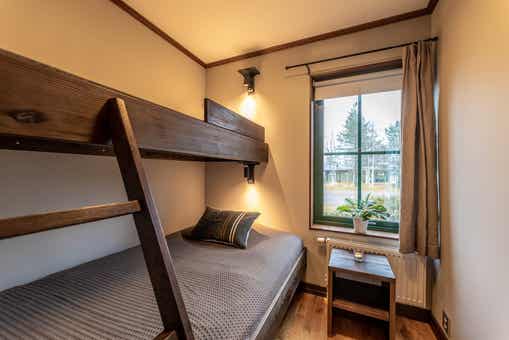 Slaapkamer-1 = 1 stapelbed met 120 cm breed onderbed. Slaapkamer-2 = 1 tweepersoonsbed. Slaapkamer-3 = 1 tweepersoonsbed. Slaapkamer-4 = 1 stapelbed met 120 cm breed onderbed.