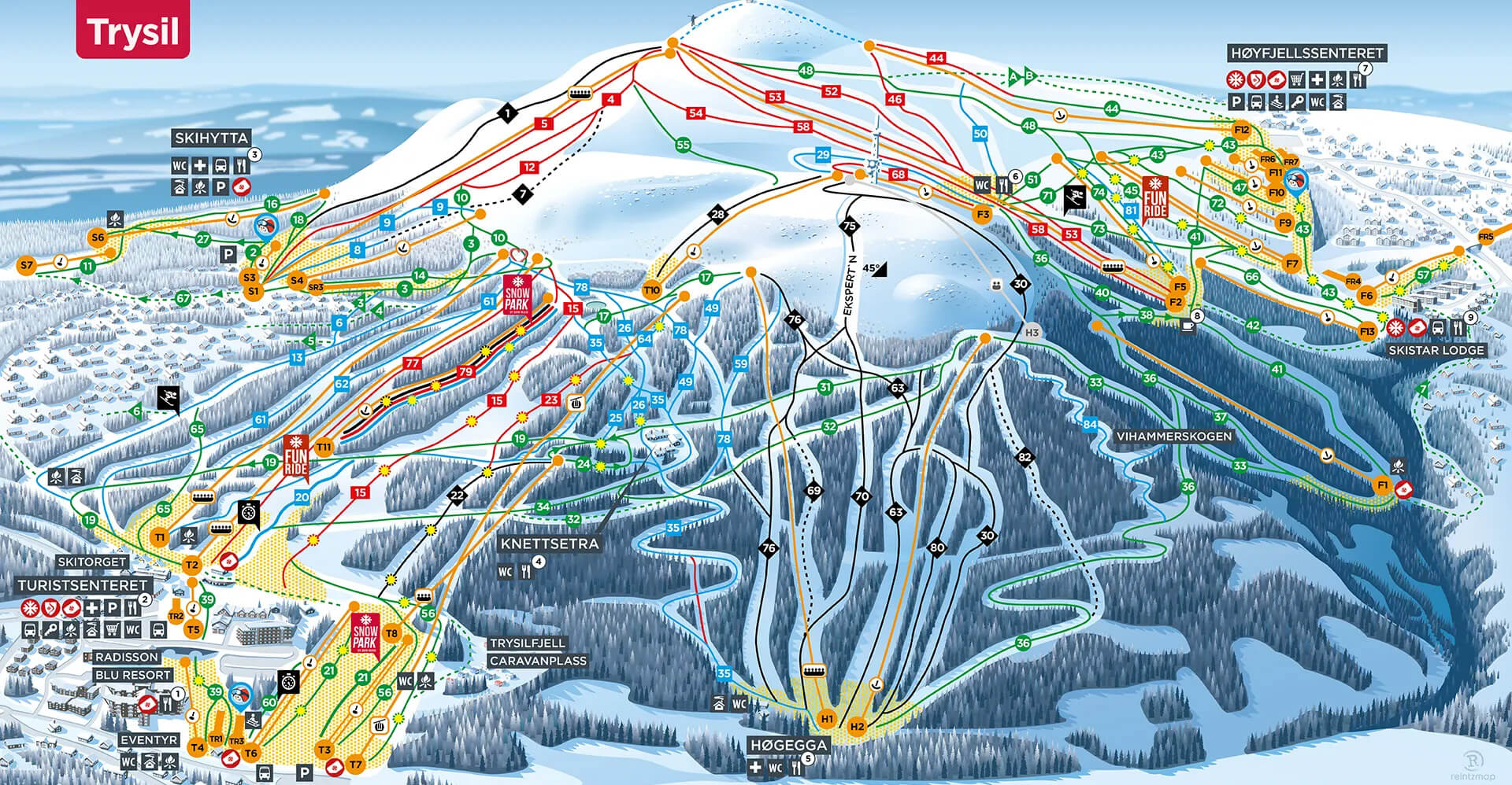 Top Trysil bevindt zich op Trysilfjell Hytteområde. Appartement op de tweede verdieping, 10 bedden, 120 m², woonkamer met gecombineerde keuken, 4 slaapkamers, 2 douches, 2 toiletten, 1 sauna.