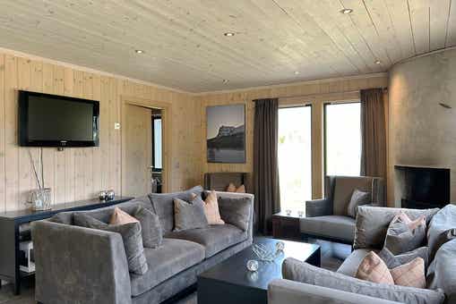 Rådyrlia bevindt zich in Hemsedal Skisenter. Cabine met twee verdiepingen, 12 bedden, 144 m², woonkamer met gecombineerde keuken, 5 slaapkamers, whirlpool, 3 douches, 3 toiletten, 1 sauna.
